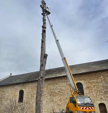 • 🪜 Abattage par démontage : découpe de l’arbre en plusieurs sections pour une intervention sécurisée, même en milieu sensible.