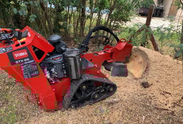 • 🪓 Rognage de souche : broyage mécanique de la souche jusqu’à la réduire en copeaux de bois.
